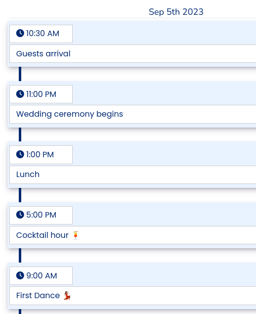 With agenda, you have a clean interface that allows you to manage your event agenda. As event admin, you can break down your planning with as much as thirty items for a single day. For multi-day events our platform automatically organizes your agenda in as many days your event has giving you a clean and easy interface to manage you event agenda.