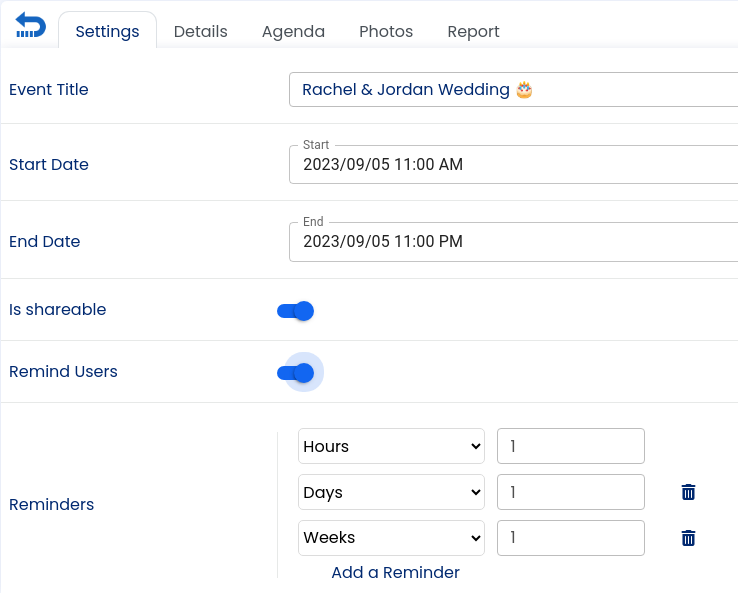 Concerned about your event details privacy, you can at any time make an event private by turning off the Is Shareable control button.